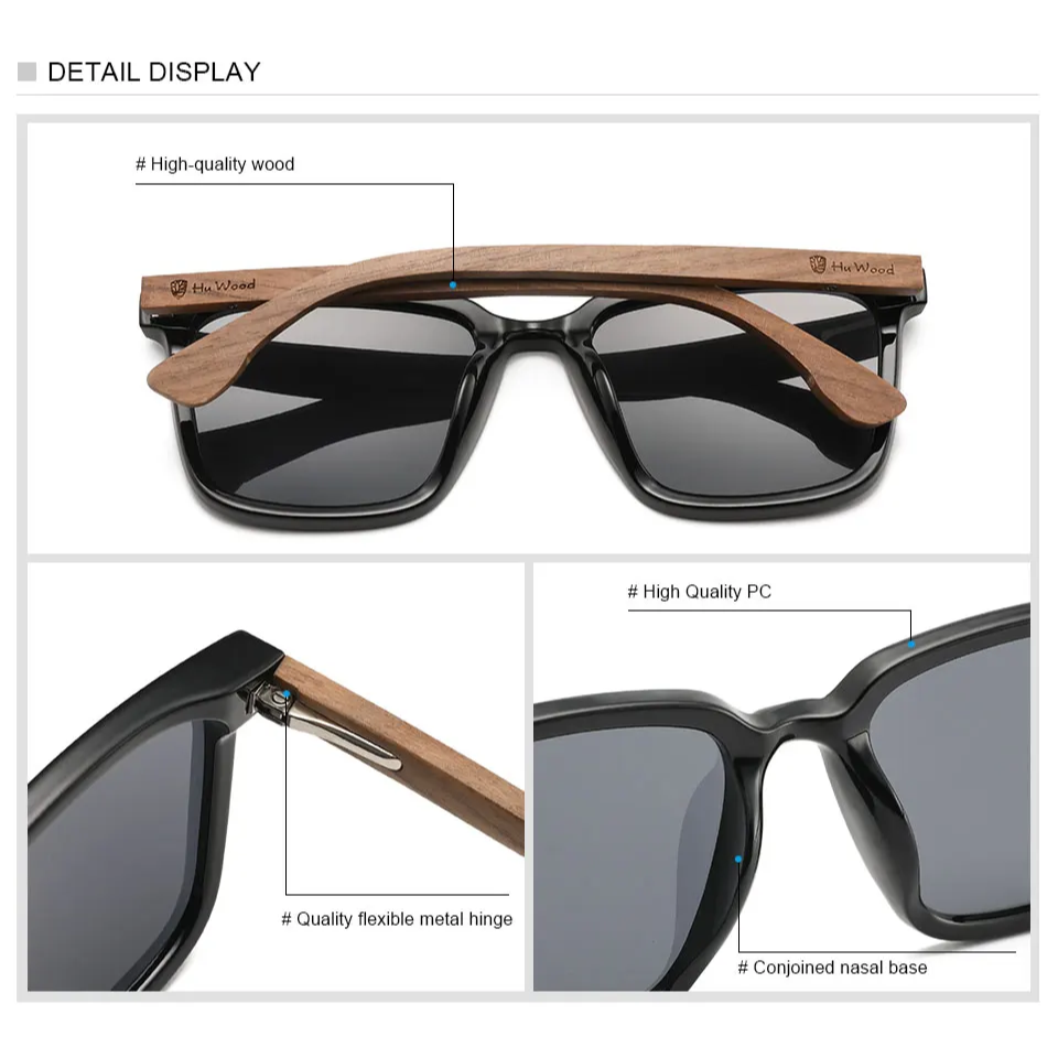 Hu Wood ウッドアーム ポラライズド・スクエアサングラス