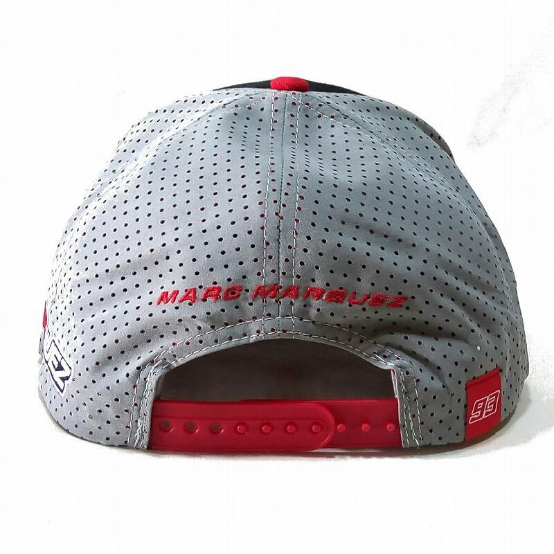 アントマークはラバー素材による立体加工がほどこされており、涼しげなメッシュ加工の帽体左右にはマルケスの名前とパーソナルナンバーである93が刺繍されています。