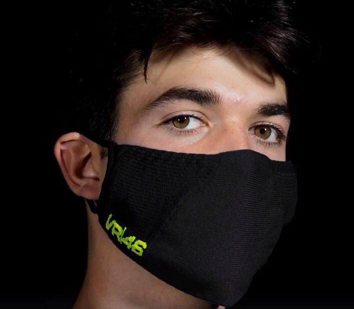 こちらはバレンティーノ・ロッシの公式ブランドであるVR46が、ウィズコロナ・アフターコロナの時代に対応してリリースしたマスクです。ロッシを象徴するイエローと対比になるブラックカラーの組み合わせで、レーシーなイメージをかもしだすアイテムになっています。