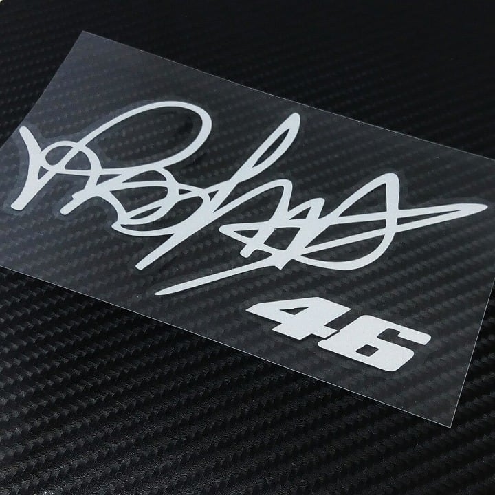 モーターサイクルロードレースの生ける伝説、バレンティーノ・ロッシ。彼のシグニチャー(サイン)を模したステッカーです。