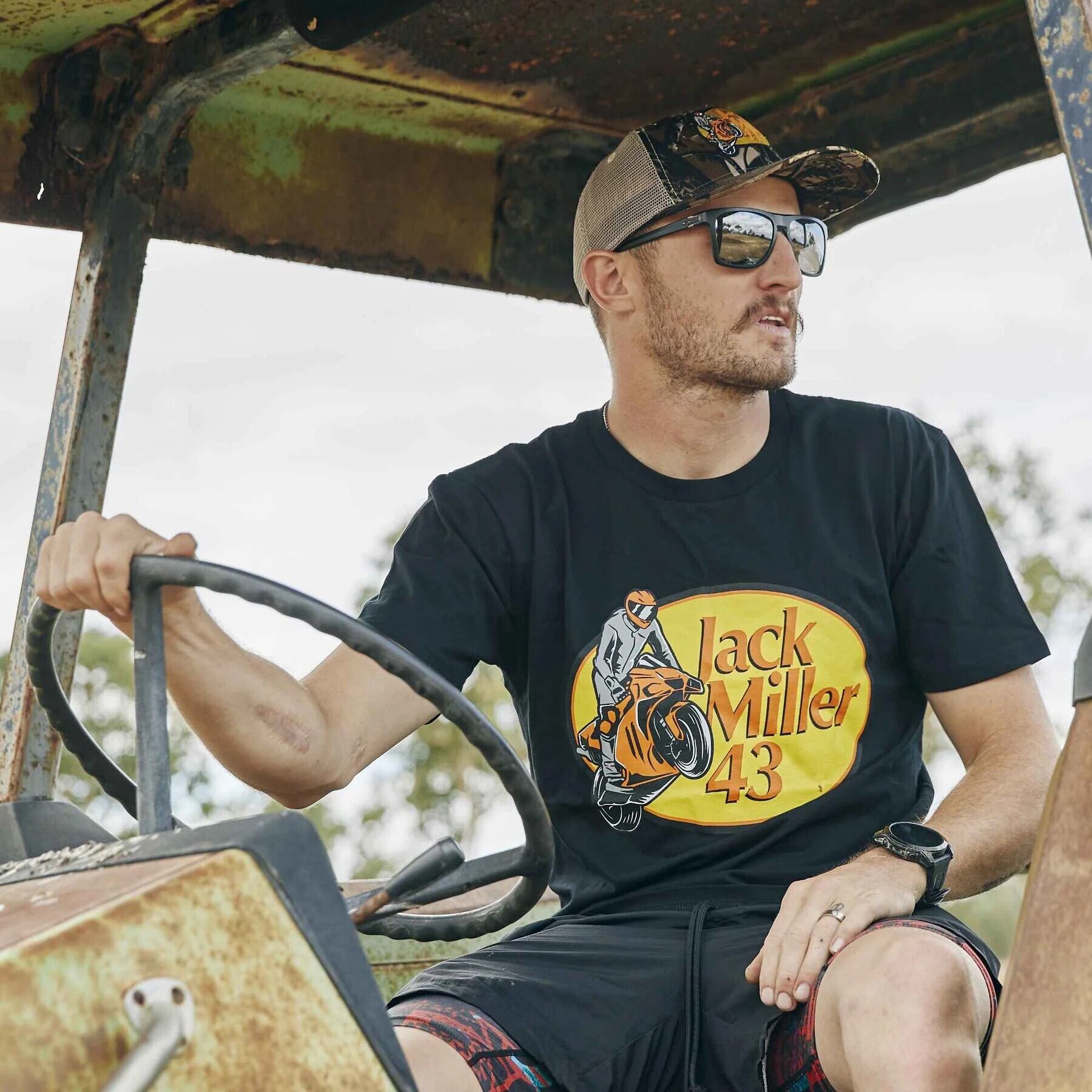 故郷のオーストラリアの雄大な自然を感じさせる迷彩柄でデザインされたキャップには、ミラーのアイコンであるライダー・ミラーとゼッケン43が誇らしく刺繍されています。