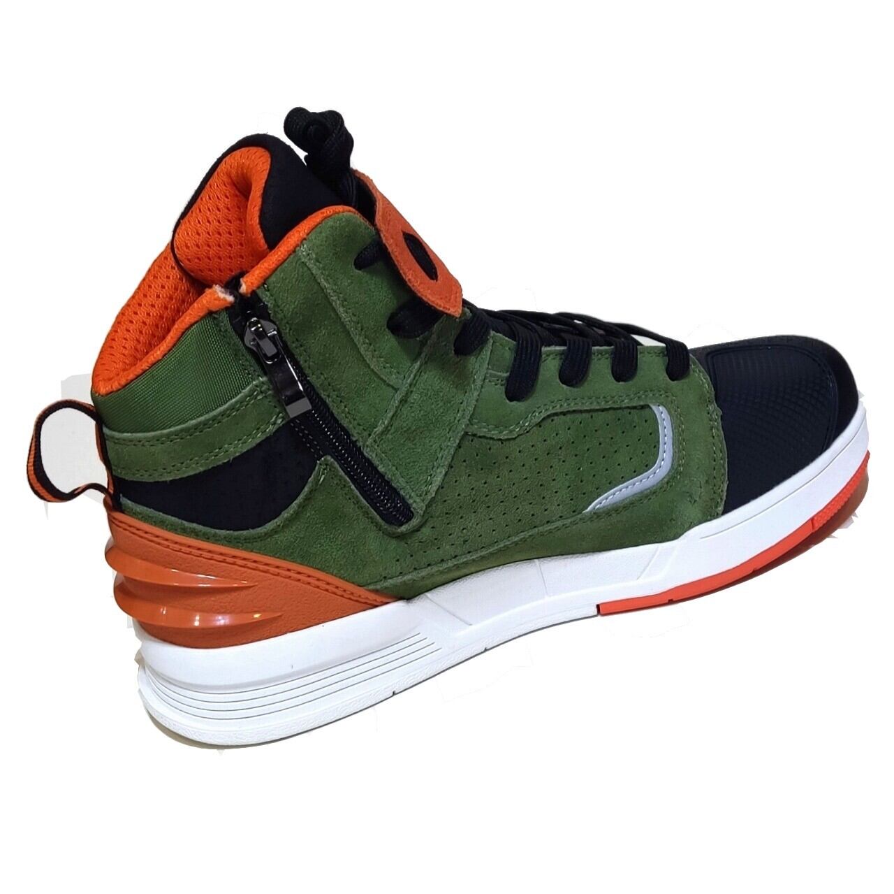【送料無料】プロテクティブモーターサイクルライディングスニーカー(本革バックスキン採用:ハードソールタイプ)グリーン&オレンジ