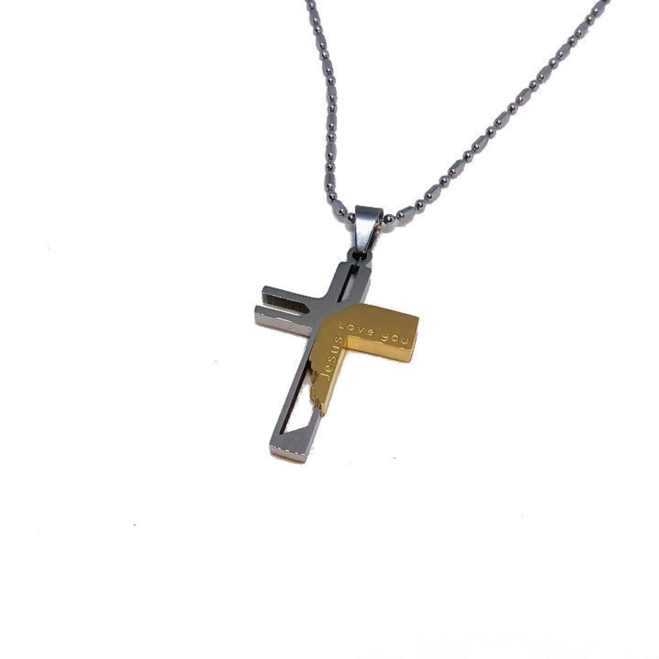 "Love you Jesus" 316L ハイポリッシュステン・クロスペンダント