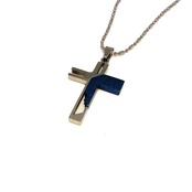 シャープに造形された十字クロスに、それぞれゴールド、ブルー、ブラックのアクセント。そしてそこには "Love you Jesus" の文字が刻印されています。